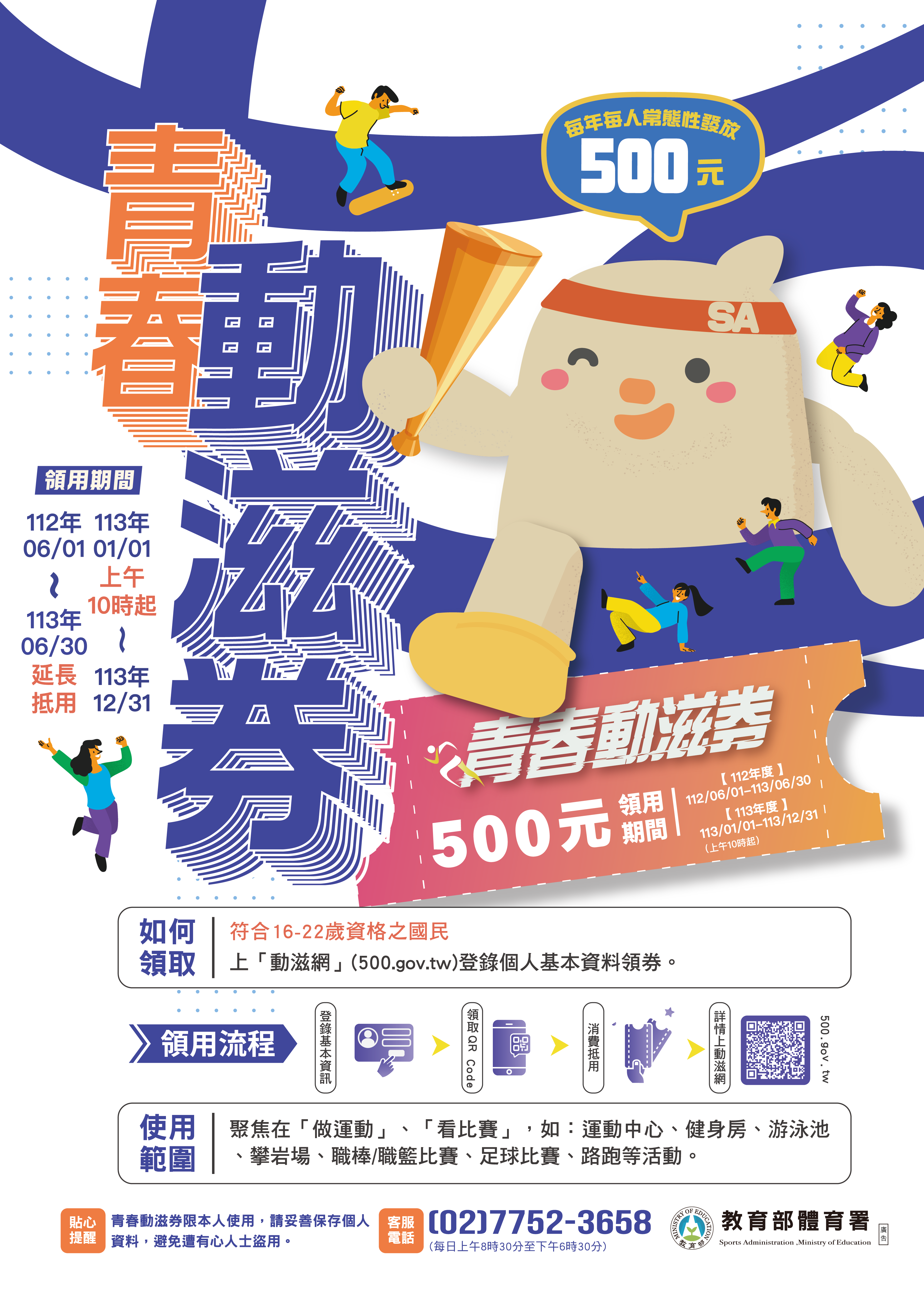 轉貼教育部體育署來函附件:青春動滋券宣傳海報